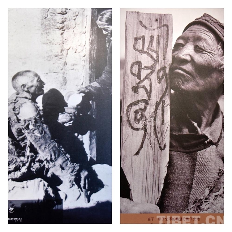 中國西藏網(wǎng)訊 一張圖片是衣服破爛的桑登手拿木碗正在求乞,一張圖片是桑登分到了土地,短短幾年,曾是乞丐的桑登生活發(fā)生了巨大的變化,這一切是因為1959年的西藏民主改革。