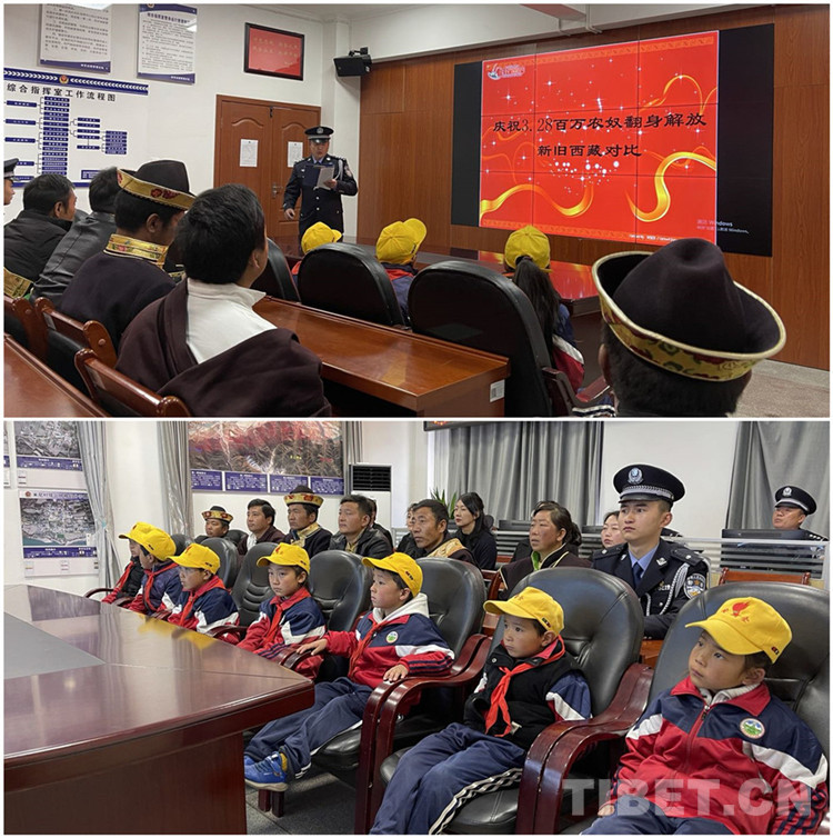 儀式結(jié)束后,派出所邀請(qǐng)學(xué)校師生及群眾代表參觀警營(yíng),民警貢秋羅布還為學(xué)生們上了一堂生動(dòng)的西藏百萬(wàn)農(nóng)奴解放歷史課,講解了西藏百萬(wàn)農(nóng)奴在中國(guó)共產(chǎn)黨的帶領(lǐng)下,打破政教合一的封建農(nóng)奴制的枷鎖;講述了短短幾十年跨越上千年的社會(huì)主義新西藏的發(fā)展奇跡。課后,小學(xué)生多吉說(shuō),“從這堂課里,知道以前的小孩多么可憐,現(xiàn)在我們有了警察叔叔和老師們的幫助,一定要好好學(xué)習(xí),長(zhǎng)大以后報(bào)效祖國(guó)。”