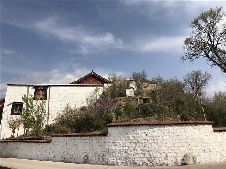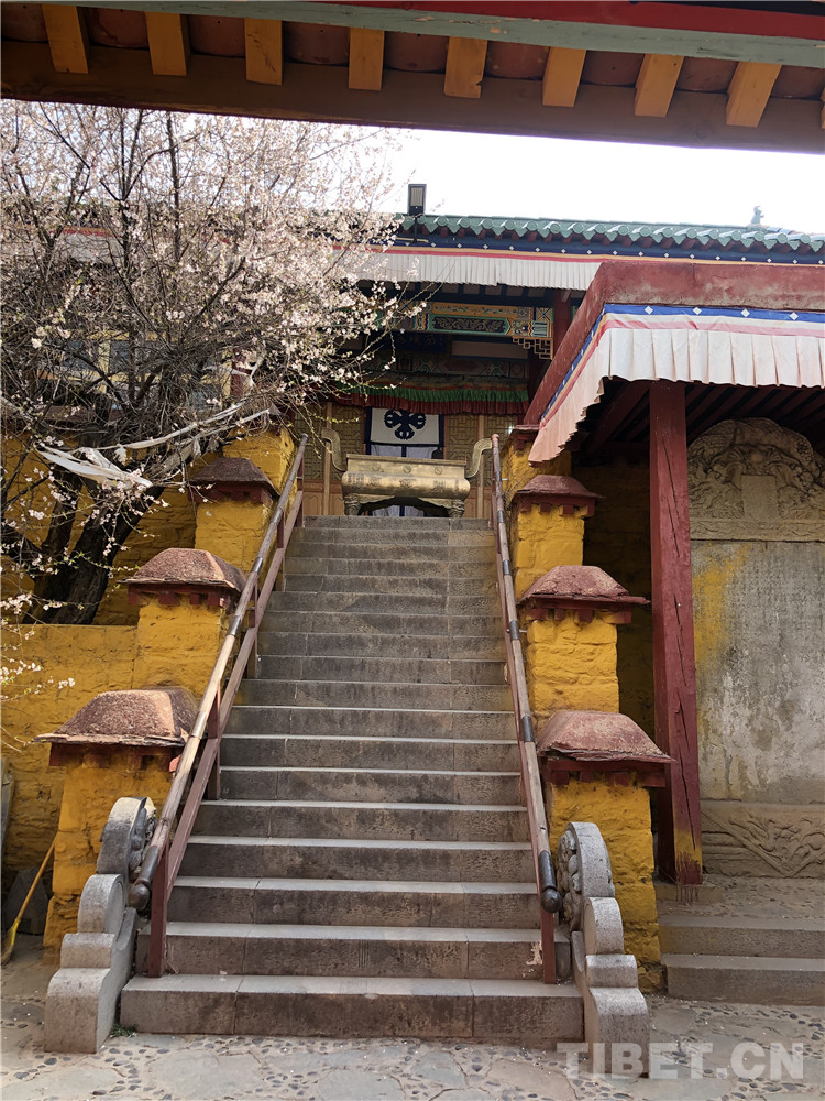 這段碑文充分表明了,清朝中央政權(quán)對西藏地方的守護(hù)和管理。也表現(xiàn)出建廟立碑者大將軍福康安的胸襟和氣魄。在看碑文時(shí),腦子里浮現(xiàn)出那場發(fā)生在18世紀(jì)的戰(zhàn)爭,清朝大將軍??蛋猜暑I(lǐng)滿漢蒙藏各民族組成的騎兵,刀劍相錯(cuò)、血雨腥風(fēng)的畫面。一抬頭,廟中院子里卻靜謐異常,只有那株開滿花的桃樹,散落幾片花瓣,似乎在隨我一同追憶和祭奠這段歷史中的高光時(shí)刻。這段歷史中充滿了各種有益于我們這個(gè)時(shí)代的精神內(nèi)核,不畏艱險(xiǎn)保家衛(wèi)國、各民族兄弟同仇敵愾、對共同民族英雄的認(rèn)可等,這些都凝聚在這個(gè)安靜的上午,這座名字很獨(dú)特的小廟之中。抬起頭,從關(guān)帝廟的正門,往外望去,整個(gè)拉薩城充滿活力和現(xiàn)代氣息地展現(xiàn)在眼前,這座寺廟的靜謐似乎正像廟中供奉的兩位英雄一樣,默默地守護(hù)著這座城市的煙火氣息。