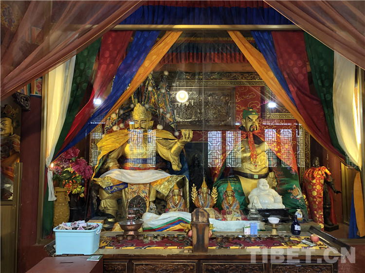 圖為正殿中的關(guān)帝和格薩爾王像