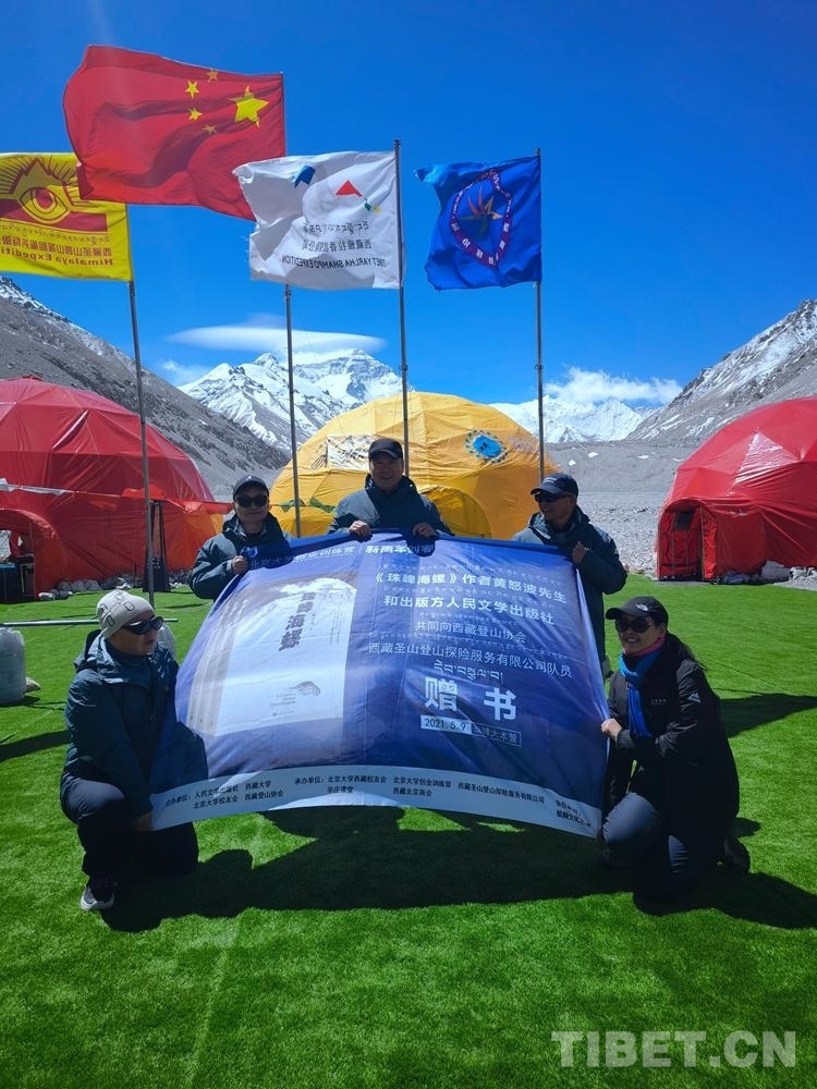中國(guó)西藏網(wǎng)訊 5月9日,在位于西藏自治區(qū)日喀則市的珠峰大本營(yíng),長(zhǎng)篇小說(shuō)《珠峰海螺》的作者黃怒波先生和該書的出版方人民文學(xué)出版社,共同向日喀則市、西藏登山協(xié)會(huì)、西藏圣山登山探險(xiǎn)服務(wù)有限公司隊(duì)員贈(zèng)書。