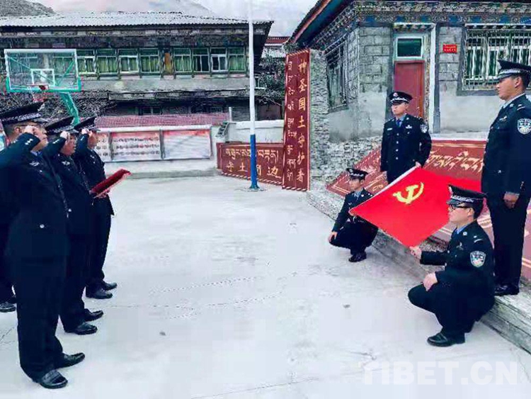圖為朗縣邊境管理大隊全體黨員重溫入黨誓詞 攝影:柳春偉