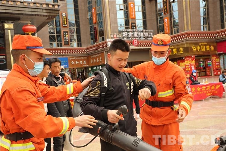 圖為昌都市民體驗(yàn)操作滅火裝備