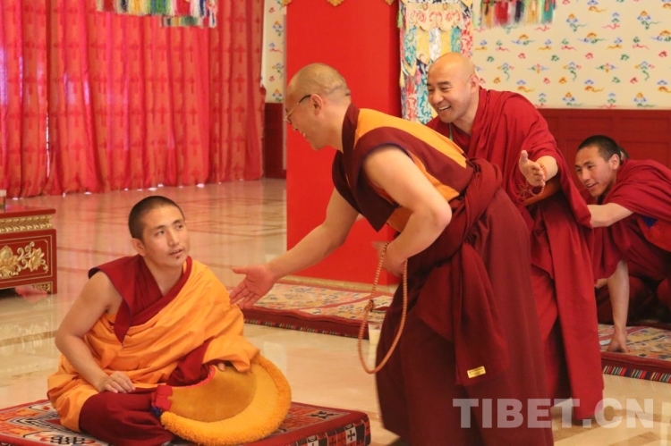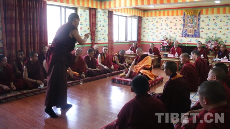 圖為薩迦派辯經(jīng)考試現(xiàn)場