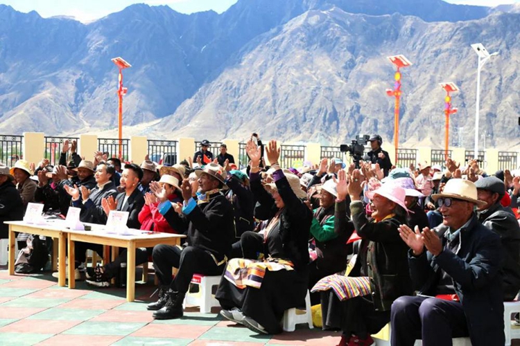 嘎東團(tuán)結(jié)新村的村民們?cè)缭绲貋淼戒浿片F(xiàn)場,坐在觀賽區(qū)等候比賽開始。當(dāng)62歲的參賽歌手阿乃引吭高歌《北京的金山上》,全場村民跟著節(jié)奏揮動(dòng)手中的紅旗,一起和唱著“北京的金山上光芒照四方,毛主席就是那金色的太陽……”熟悉的旋律依舊讓人感動(dòng),唱出了西藏各族兒女對(duì)黨真摯的感情。