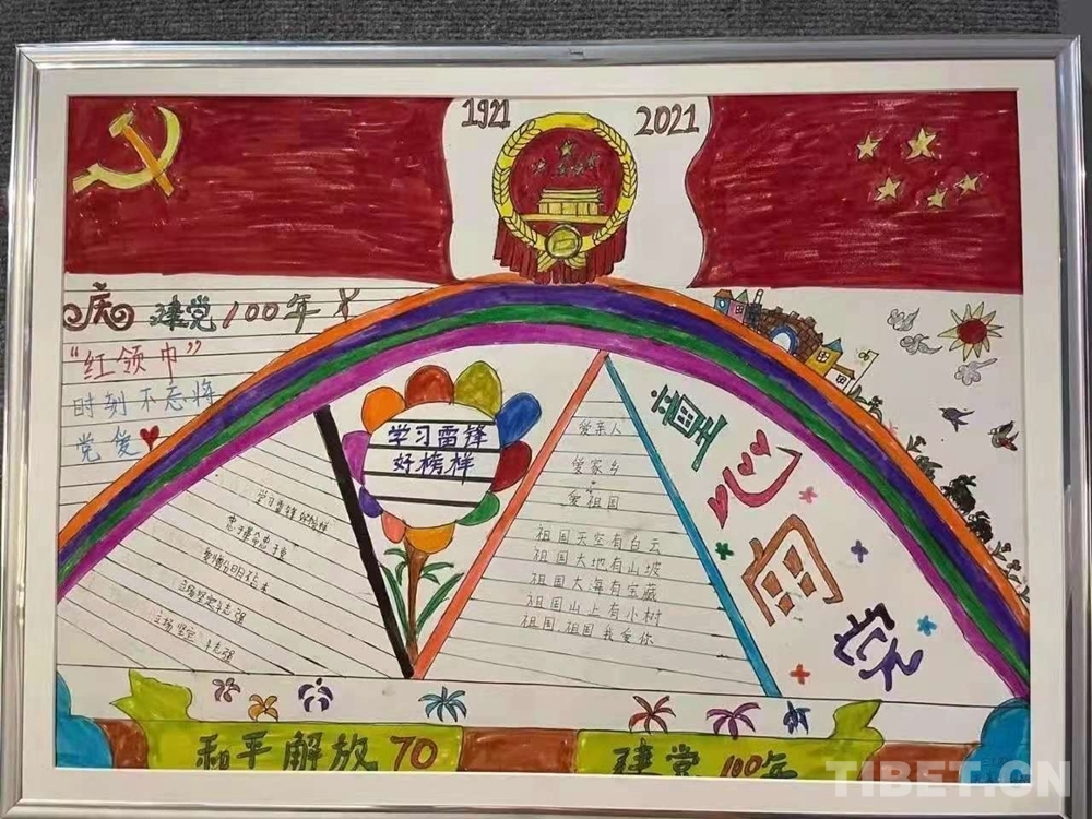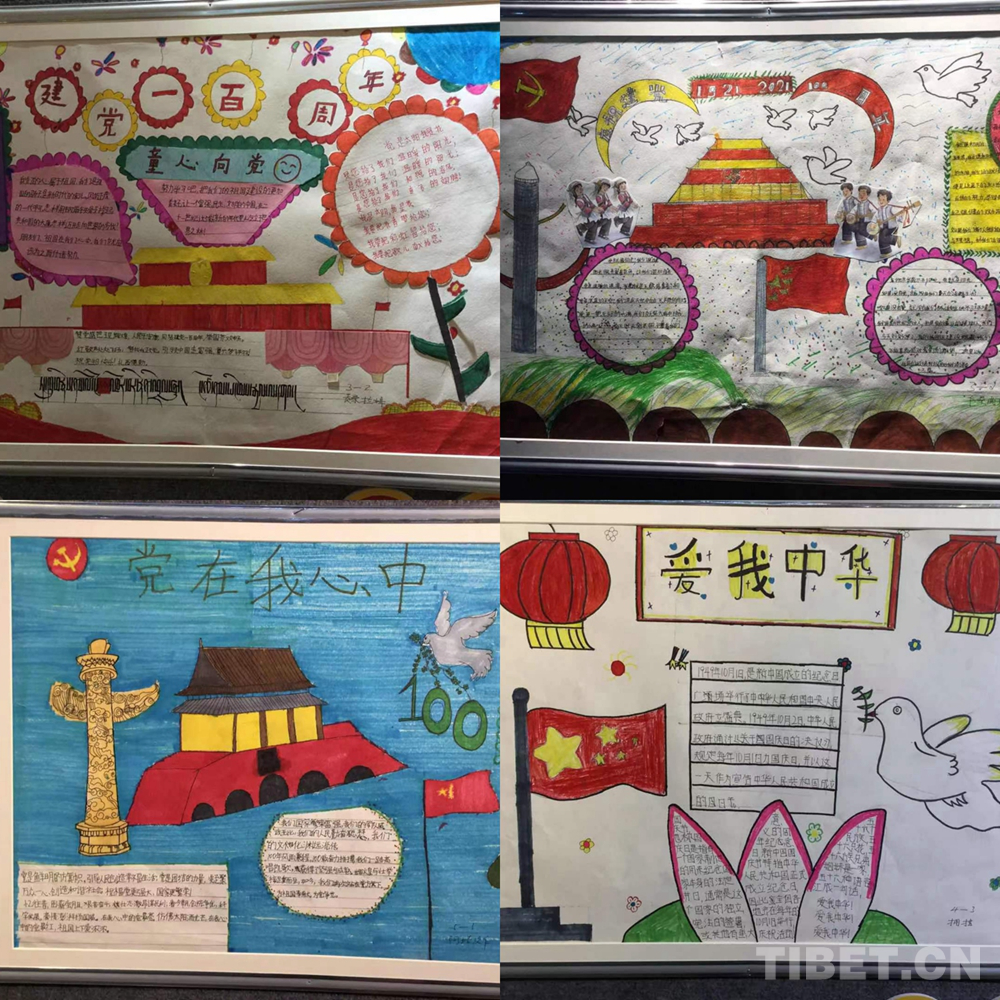 此次展覽是在慶祝中國共產(chǎn)黨成立100周年、西藏和平解放70周年之際,舉辦的一次展示西藏少年精神面貌的少兒手抄報(bào)專題展。展覽從今年三月份開始策劃,共展出240幅堆龍德慶區(qū)小學(xué)生手抄報(bào)。