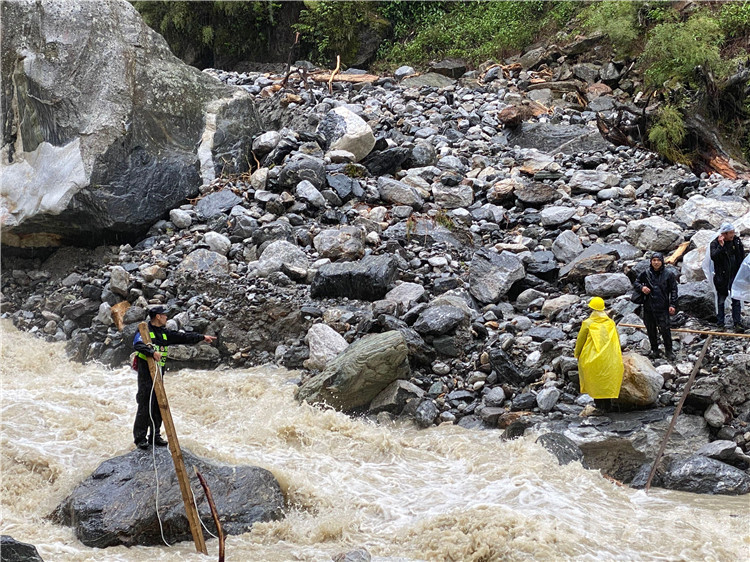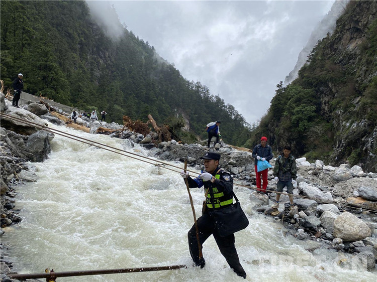 在經(jīng)過勘察后,派出所民警發(fā)現(xiàn)左布德至國防公路四號橋位置發(fā)生大面積山體滑坡10余處,救援隊(duì)研判搜救風(fēng)險(xiǎn)后,通過搭橋、吊繩、分批護(hù)送等方式打通了長達(dá)10公里的“生命通道”。