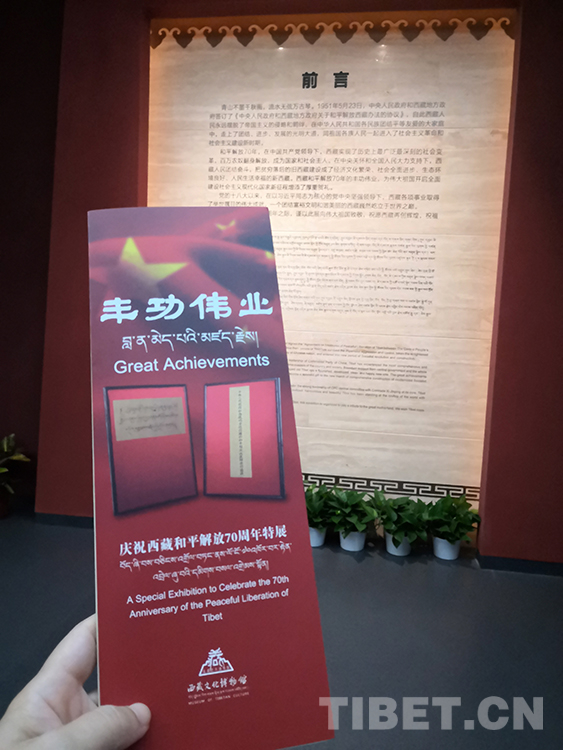 展覽以350多幅圖片、61件(套)珍貴實物和文獻,采用虛擬現(xiàn)實、多媒體互動等表達(dá)手段,通過實物模型、場景復(fù)原、幻影成像、三維模型等多種形式,集中展現(xiàn)西藏和平解放70年來發(fā)生的歷史性轉(zhuǎn)變、取得的歷史性成就。