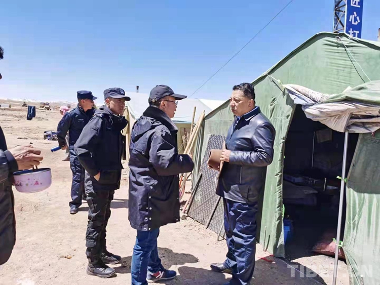 圖為麻多鄉(xiāng)黨委書記(右一)在源頭保護站調研生態(tài)狀況 攝影:才仁當智