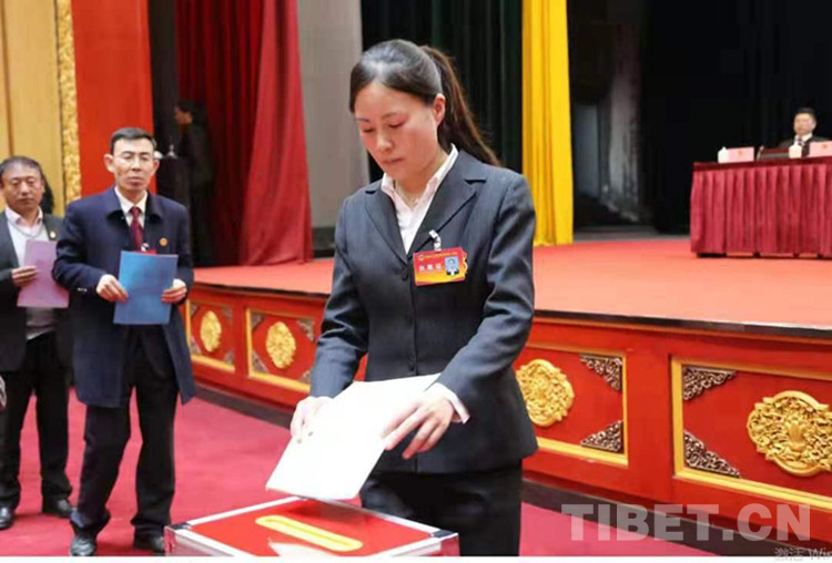 圖為談小燕同志參加嘉黎縣第十三屆人民代表大會投票選舉照片由談小燕提供