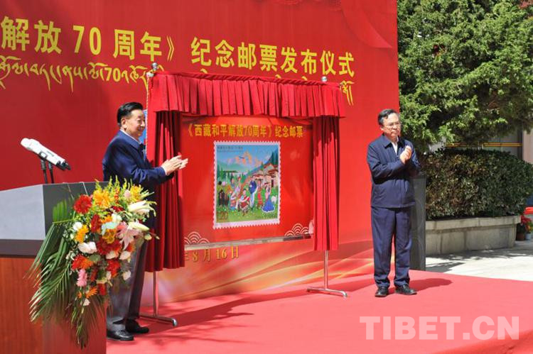 中國西藏網(wǎng)訊 8月16日下午,《西藏和平解放70周年》紀(jì)念郵票發(fā)布儀式在西藏自治區(qū)拉薩市舉行。
