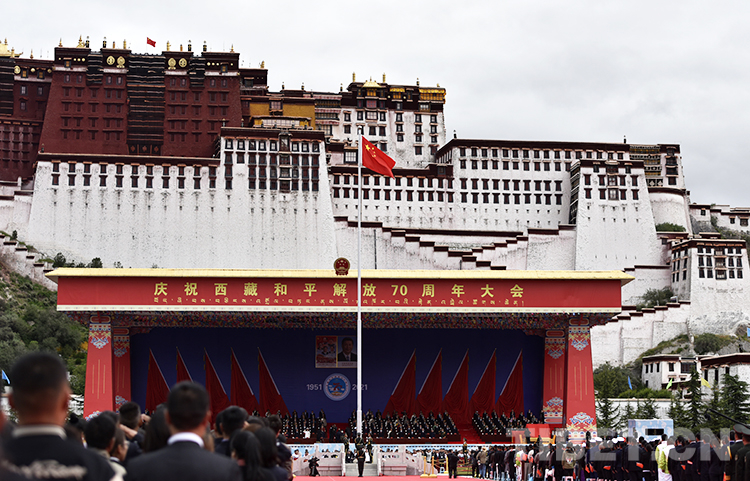 圖為8月19日上午,西藏各族干部群眾歡聚在布達拉宮廣場,熱烈慶祝西藏和平解放70周年 攝影:王媛媛
