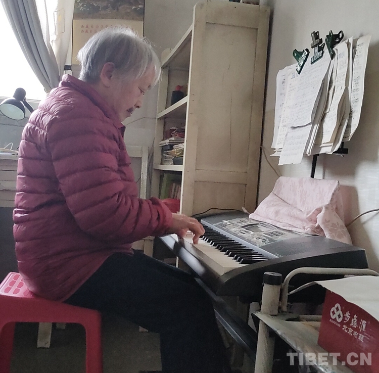 鄧親和,四川省樂山市犍為縣人,出生于1931年,十八軍52師文工隊戰(zhàn)士。1950年,鄧親和19歲,正值高三,成績優(yōu)異的她不顧家人的勸阻,毅然放棄了繼續(xù)讀書的機會,踏上了解放西藏的征途,從此在雪域高原上留下了人生最寶貴的青春足跡。初見鄧老師,她親切和藹的樣子,給我留下深刻的印象。老人雖然退休多年,但是她的生活仍然格外豐富。據(jù)老人講,她的作息時間比較規(guī)律,堅持做八段錦鍛煉身體,自己做家務(wù),空閑時間還會看書看報、提筆練字,或是彈彈電子琴,唱唱歌等等,生活豐富多彩。此刻,我從她的身上看到了年輕時鄧親和的神態(tài)與風采?;厥啄嵌螎槑V歲月,翻雪山、過草地、穿峽谷、涉冰河……面臨高山缺氧的生命危險,趟越急流冰河的刺骨鉆心,爬冰臥雪、忍饑耐寒,遇艱險不畏其險,歷困難不以為難,樁樁件件好似一首首雋永的絢麗詩篇,常在她記憶里回蕩,令人難忘。