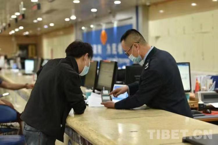 圖為西藏自治區(qū)稅務(wù)系統(tǒng)工作人員幫助納稅人辦理業(yè)務(wù)