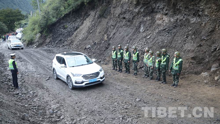 中國西藏網(wǎng)訊 8月28日18時(shí)許,經(jīng)過武警第二機(jī)動(dòng)總隊(duì)某支隊(duì)官兵連續(xù)5天的艱苦鏖戰(zhàn),搶修出一條長(zhǎng)215米的便道,使因路基垮塌造成國道318線西藏自治區(qū)林芝波密境內(nèi)段斷通的道路成功恢復(fù)通行,可供小型車輛單向通行。在武警官兵的指揮下,滯留兩端的車輛有序帶隊(duì)安全通過。