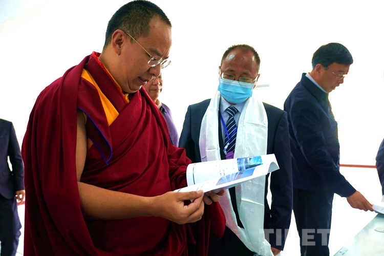 圖為班禪認(rèn)真翻閱申扎縣城集中供暖熱廠有關(guān)資料 攝影:王淑