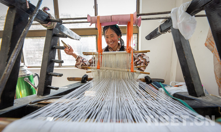 圖為正在編織氆氌的織工 攝影:趙耀