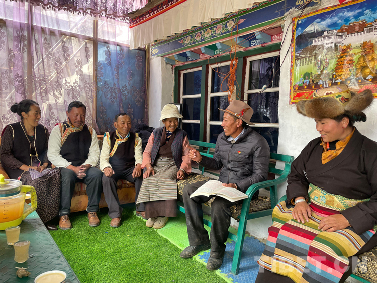 圖為索朗頓珠進農戶宣講黨史知識