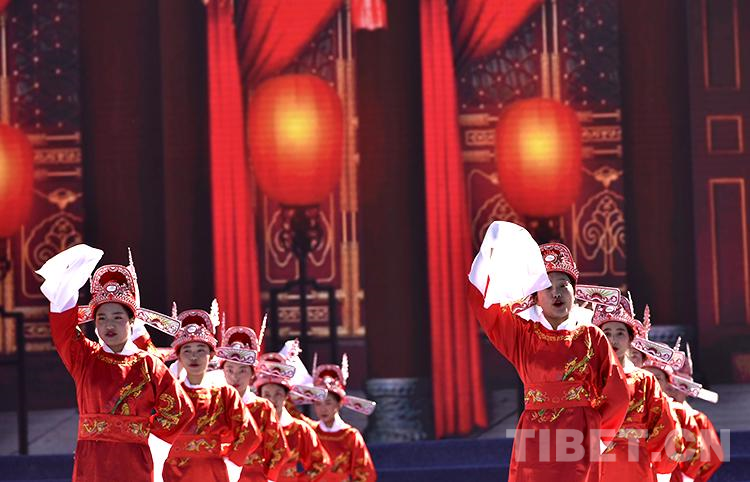 舞臺上,西藏背鼓和安徽鳳陽花鼓同臺敲擊,山南市第二高級中學的學生們穿著戲服用藏漢雙語演繹著黃梅戲《女駙馬》選段,熱烈的掌聲從觀眾席傳出。