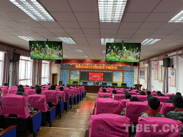 當(dāng)日下午,邀請那曲軍分區(qū)干部走進(jìn)校園為那曲市二中學(xué)生開展一次國防教育專題講座。專題講座開始前,首先由七年級格桑次仁和巴桑旺姆同學(xué)為大家深情朗誦《請黨放心 強(qiáng)軍有我》,一首詩詞朗誦把大家緩緩帶入課堂。由那曲軍分區(qū)唐鵬同志運(yùn)用豐富的知識(shí)和大量史實(shí),圍繞國防教育的重要意義等內(nèi)容為大家作了一場精彩的講座,利用媒體視頻、圖片資料給師生們講解了我國國防現(xiàn)狀、國防建設(shè)的重要作用,讓學(xué)生掌握基本軍事知識(shí)技能,加深對軍隊(duì)的認(rèn)識(shí)和理解,整個(gè)講座旁征博引,數(shù)據(jù)翔實(shí),觀點(diǎn)敏銳,既有清晰的歷史脈絡(luò),又有具體事件的介紹,在同學(xué)中引起了強(qiáng)烈共鳴。