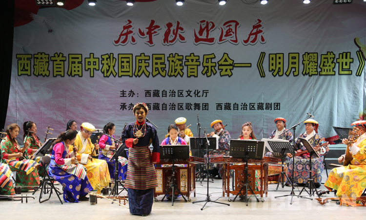 中國(guó)西藏網(wǎng)訊 器樂齊奏、堆諧奔放、歌曲悠揚(yáng)……9月25日晚,一臺(tái)以“享民樂美、敘佳節(jié)情”為主題的民族音樂會(huì)——《明月耀盛世》在西藏自治區(qū)藏劇團(tuán)上演。作為西藏自治區(qū)首屆中秋國(guó)慶民族音樂會(huì),音樂會(huì)營(yíng)造了濃厚喜慶的節(jié)日氛圍。