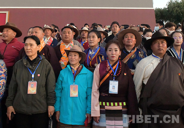 當(dāng)日凌晨,懷著萬(wàn)分激動(dòng)的心情,來(lái)自西藏自治區(qū)山南市貢嘎縣森布日極高海拔生態(tài)搬遷安置點(diǎn)的基層干部身著民族盛裝,來(lái)到北京天安門廣場(chǎng),站在東觀禮臺(tái)上靜靜地等候著五星紅旗冉冉升起。