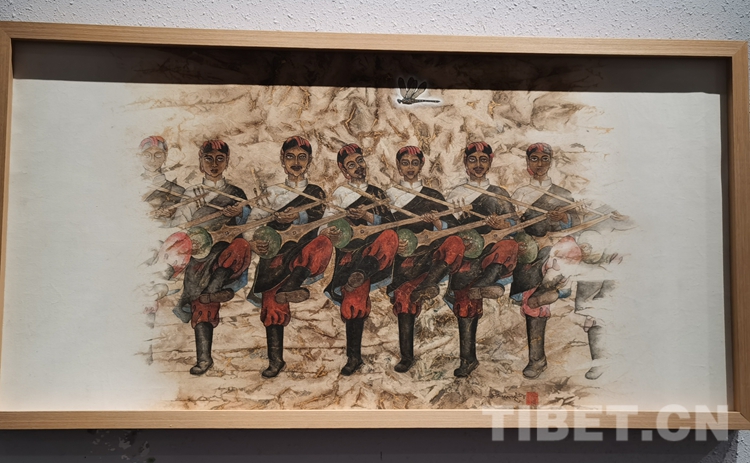 “此次展覽相對齊全,體現(xiàn)了當(dāng)代藝術(shù)家,在總書記文藝系列講話的鼓舞和指引下,以人民為中心關(guān)注生活,關(guān)注西藏。認(rèn)真地用自己的語言、藝術(shù),思維來表現(xiàn)社會主義新西藏方方面面的日新月異和成果,我覺得這樣的成果是實實在在地向中國共產(chǎn)黨成立100周年和西藏和平解放70周年獻(xiàn)禮?!敝嫾翼n書力說。