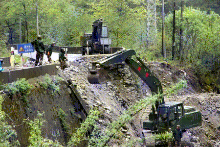 圖為路途中遇到清障、維護(hù)工作 攝影:李元梅 王茜