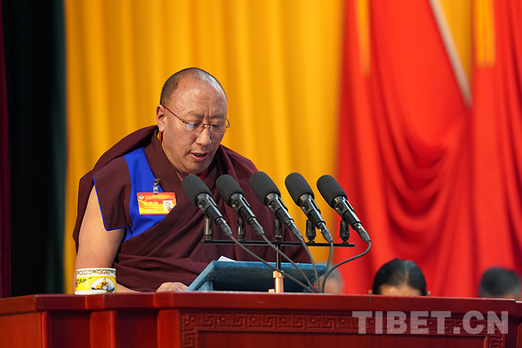 圖為西藏自治區(qū)政協(xié)十一屆五次會議第二次大會,宗教界政協(xié)委員發(fā)言 攝影:王淑