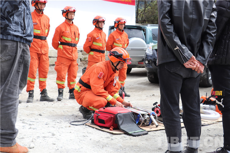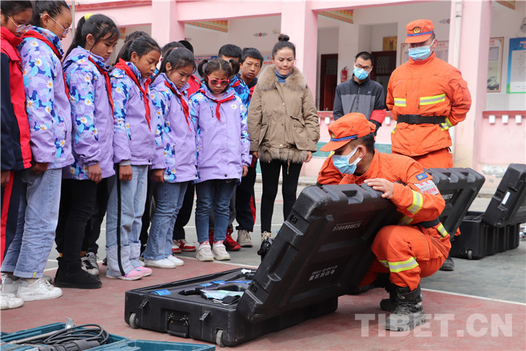 圖為為師生展示救援裝備
