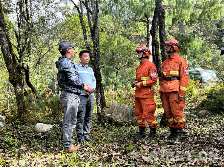 圖為與駐地護(hù)林員討論林區(qū)植被