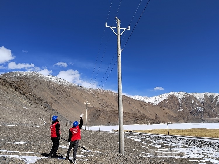 圖為國網(wǎng)西藏阿里公司變電中心人員對阿里巴獅線開展巡視巡檢工作 攝影:次旦多吉