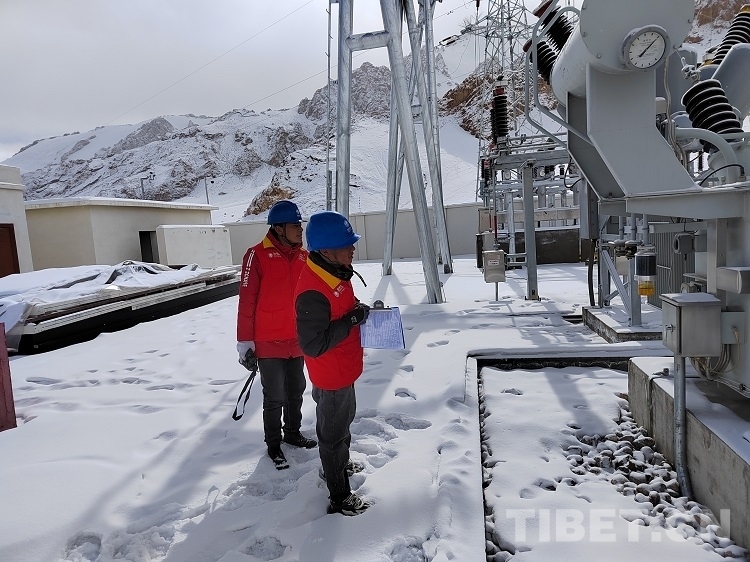 圖為大雪過后,西藏阿里供電公司變電中心人員對位于噶爾縣巴爾鄉(xiāng)的220千伏巴爾變電站內(nèi)設(shè)備開展特巡,進(jìn)行隱患排查工作 攝影:阿旺朗杰