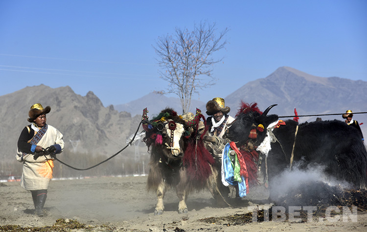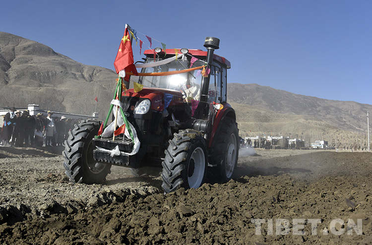 迎著初升的太陽,記者從拉薩市區(qū)出發(fā)前往雅魯藏布江北岸的山南市扎囊縣扎其鄉(xiāng)孟卡榮村春耕現(xiàn)場。寓意豐收的切瑪盒、紅色穗子裝扮的牦牛、彩色布條裝飾的耕整機(jī)……置身其中,熱鬧非凡。