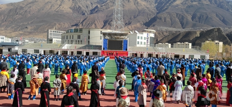 28日上午,全校師生共計(jì)800余人參加慶祝活動(dòng)。師生們?cè)谇f嚴(yán)的國歌聲中舉行了升旗儀式。隨后,學(xué)生代表就西藏百萬農(nóng)奴解放63周年紀(jì)念日發(fā)表了國旗下演講,從舊西藏的故事講起,展示了如今新西藏的美好生活,號(hào)召大家銘記歷史,珍惜當(dāng)下,學(xué)好知識(shí),為家鄉(xiāng)的建設(shè)貢獻(xiàn)自己的力量。校長勉勵(lì)學(xué)生珍惜當(dāng)下幸福生活,努力學(xué)習(xí),將來做合格的社會(huì)主義建設(shè)者和接班人。