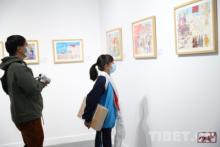 圖為畫美時(shí)代——“紀(jì)念西藏百萬(wàn)農(nóng)奴解放63周年”拉薩市青少年優(yōu)秀繪畫作品展現(xiàn)場(chǎng)