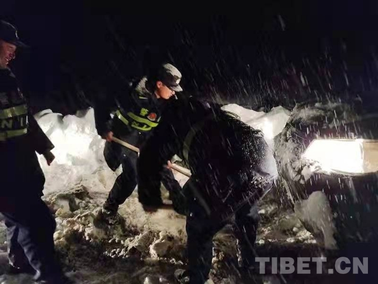 在前往救援途中,民警陸續(xù)又接到3起報(bào)警求助電話??梢源_定至少4輛車輛被困。救援工作刻不容緩,竹瓦根邊境派出所民警頂風(fēng)冒雪,經(jīng)過(guò)3個(gè)小時(shí)的艱難長(zhǎng)途跋涉,克服高海拔缺氧,道路側(cè)滑等危險(xiǎn)和困難,及時(shí)趕到事故現(xiàn)場(chǎng)開(kāi)展救援。截至4月2日凌晨3點(diǎn)30分,竹瓦根邊境派出所民警先后救助被困車輛4臺(tái),救助被困群眾8人。在護(hù)送返回途中,一行人員又遭遇雪崩,道路受阻。移民警察和當(dāng)?shù)仞B(yǎng)護(hù)段工作人員共同努力,用2個(gè)小時(shí),打通了一條“生命大通道”,成功將被困群眾和車輛安全轉(zhuǎn)移。