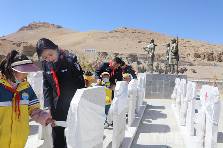 活動(dòng)中,民警、少先隊(duì)員們整齊地肅立在革命英模界碑前,紛紛向革命烈士敬獻(xiàn)了鮮花、哈達(dá),并脫帽向革命偉人深深敬禮,深切追悼英烈,表達(dá)緬懷和敬仰之情,向烈士們英勇獻(xiàn)身革命的不朽功勛和光輝業(yè)績致敬。