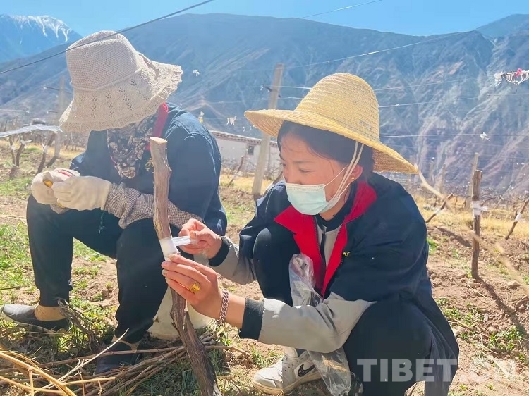 春到高原,萬物復(fù)蘇,葡萄樹慢慢地長出了嫩綠嫩綠的小芽,經(jīng)過幾天進(jìn)化,葉子變成了綠色。在一望無際的葡萄園里,西藏自治區(qū)芒康縣納西民族鄉(xiāng)勤勞的人們開始了新一年的奮斗,他們正在嫁接新品種玫瑰蜜,小心翼翼,不斷嘗試,努力不會騙人,大自然的土地、陽光和水分,在金秋時(shí)節(jié),會給予人們最豐厚的饋贈!(中國西藏網(wǎng) 通訊員 梁俠 曲措)