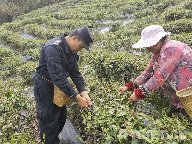“純手工采茶采摘芽葉比較均勻,茶葉的品質(zhì)也比較好,這也導(dǎo)致需要大量人力手工采摘,每年我們派出所都會(huì)通過(guò)開(kāi)展‘助農(nóng)春耕’活動(dòng),幫助轄區(qū)人手不足的農(nóng)戶采摘茶葉?!北潮肋吘撑沙鏊窬钪艺f(shuō)。