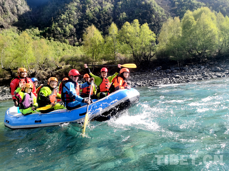 在西藏,五一假期期間,相較于傳統(tǒng)親近大自然的方式,一種新型的露營+漂流+徒步等綜合性的戶外打卡模式,開始受到部分群體的追捧。記者看到拉薩市民,約上好友,陪同親人,前往林芝巴河鎮(zhèn)的錯高村等地開啟度假模式。藍天白云下,在蕩漾的巴河水流中,大家駕著無動力的小船,利用船槳掌握好方向,在時而湍急時而平緩的巴河水流中順流而下,在大自然的懷抱中演繹精彩的瞬間,感受滿滿的涼爽與激情。