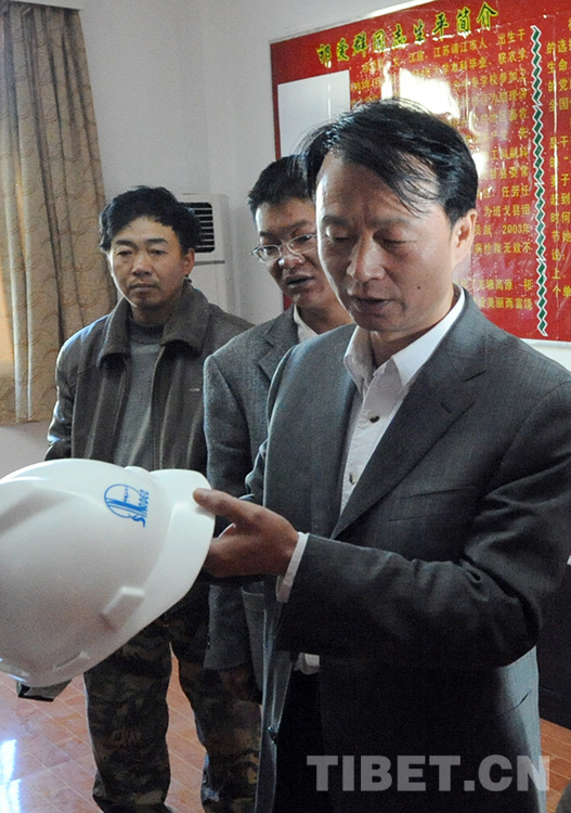 這是中國石化首批援藏干部李一超,在回憶他向祁愛群贈送這頂?shù)V工帽的經(jīng)過(唐召明2009年8月12日攝)