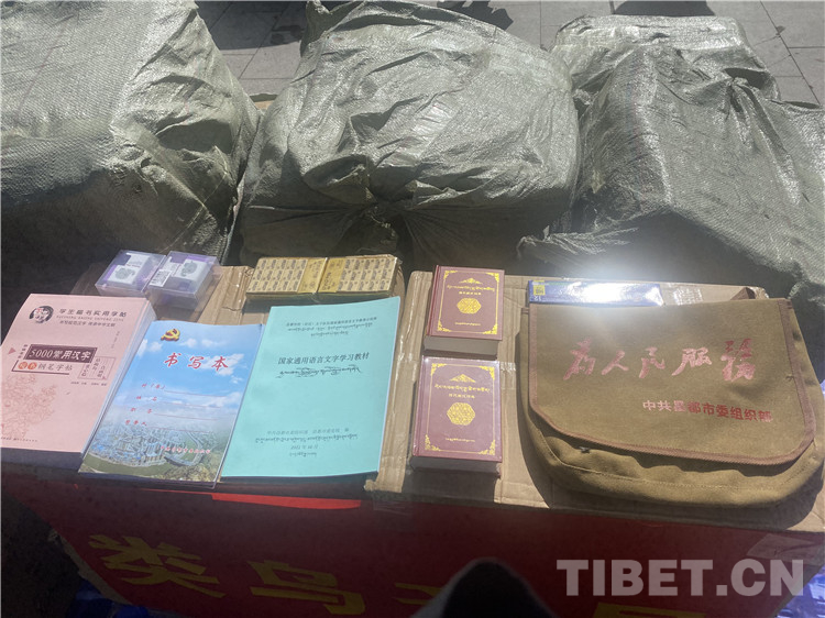 近日,昌都市舉行村(社區(qū))干部國(guó)家通用語(yǔ)言文字“學(xué)習(xí)包”發(fā)放儀式。市委組織部、市委黨校、市教育局、市強(qiáng)基辦相關(guān)負(fù)責(zé)同志為11縣(區(qū))村(社區(qū))干部代表發(fā)放國(guó)家通用語(yǔ)言文字“學(xué)習(xí)包”?,F(xiàn)場(chǎng)一片熱鬧,發(fā)放人員樂(lè)此不疲地整理、搬運(yùn)這些“學(xué)習(xí)包”。