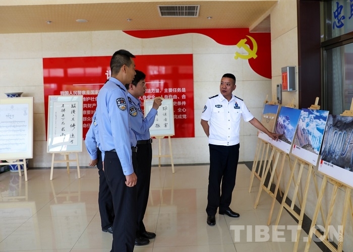 中國(guó)西藏網(wǎng)訊 夏日的西藏日喀則邊境管理支隊(duì)營(yíng)區(qū)熱鬧非凡,日喀則海關(guān)、日喀則團(tuán)市委、日喀則市退役軍人事務(wù)局、日喀則市教育局、日喀則市消防救援支隊(duì)、日喀則市反恐特偵支隊(duì)等友鄰單位干部代表與支隊(duì)民警齊聚在支隊(duì)機(jī)關(guān)觀展覽、品佳作、參觀警史館,喜迎二十大。