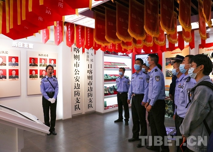 隨后,大家來到支隊(duì)警史館參觀,警史館分前廳、武警邊防廳、移民管理廳三個(gè)部分,共收集整理各類圖片資料1000余張、實(shí)物30余件,運(yùn)用多種表現(xiàn)手法,客觀地反映了1996年以來各個(gè)時(shí)期日喀則邊境管理支隊(duì)的重要工作、重大事件、取得的成績(jī)等輝煌奮斗歷程。在講解員的帶領(lǐng)下,全體干部代表認(rèn)真聆聽,駐足凝望,一件件珍貴的歷史實(shí)物,記錄著日喀則邊境管理支隊(duì)砥礪前行的光輝歷程,一張張生動(dòng)的歷史照片展示著日喀則邊境管理支隊(duì)踐行使命的動(dòng)人瞬間。