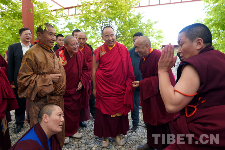 班禪表示,今天來到學院看到無論是硬件上、軟件上,都功德具足、法喜圓滿。我想一切的外在條件都已經萬事俱備,只需要我們全體師生奮發(fā)圖強,珍惜把握學習時光。“祝福學院師生們健康長壽,用我們現有的人生為祖國、為民族、為中國特色社會主義的建設、為藏傳佛教中國化做出更多的貢獻。祝愿大家六時吉祥、十相自在、功德圓滿!”