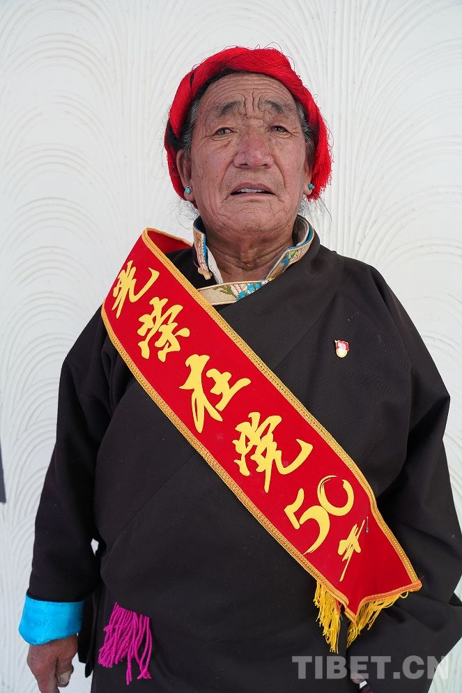 獲得紀念章的退休老黨員代表赤來次仁分享了光榮在黨50年心路歷程,表示今后將全力支持瓊結(jié)各項事業(yè)發(fā)展。
