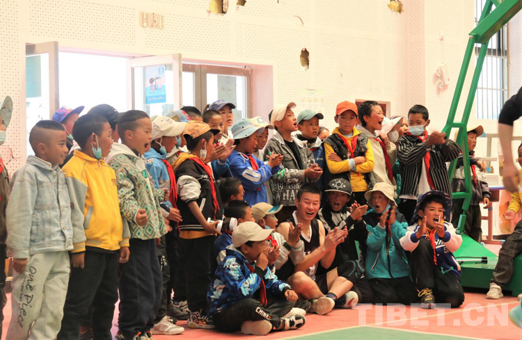 這次比賽在崗巴縣的一所學校的籃球館里舉行,比賽還沒有開始,孩子們就把館內(nèi)圍得“水泄不通”,大喊著:“劉科加油,劉科加油!”民警黃列平不情愿地和孩子們說:“怎么只對劉科喊加油啊,我們也要!”孩子們嘿嘿笑了兩聲,等到劉科休息換人的時候,呼喊聲改成了:“劉科隊加油!”