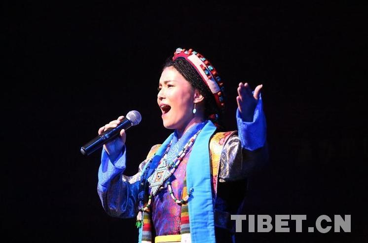 圖為開幕式現(xiàn)場歌手傾情演唱首屆西藏文化藝術(shù)節(jié)主題曲《格?;ㄩ_》 攝影:王佳豪