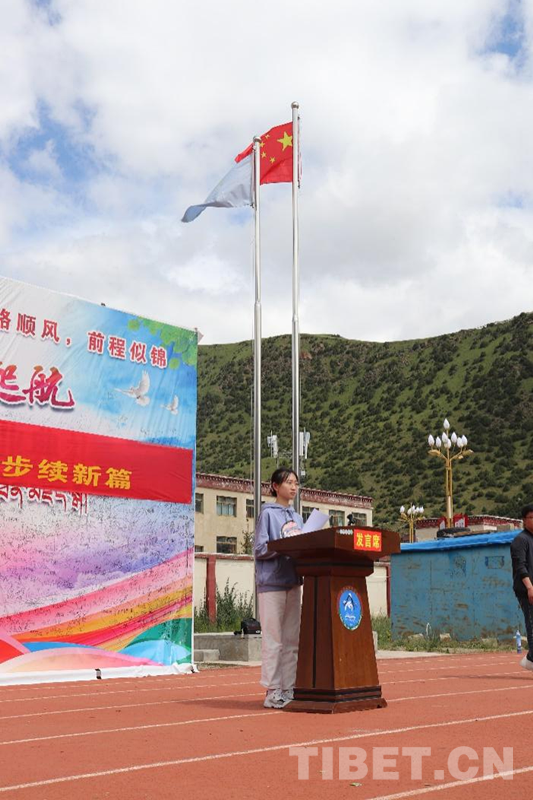 圖為閆關(guān)夏子同學在國旗下發(fā)表民族團結(jié)主題演講 李彤彤 攝